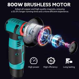 High-Efficiency Brushless Motor: 12V Mini Angle Grinder adopts high-efficiency brushless motors, the operation becomes more stable and stable. It Provides fast material removal, saves your time and energy, suitable for bending work. Many professionals and DIYers are moving in the direction of brushless motors, enjoying a longer running time of 53.5% and a more efficient experience.