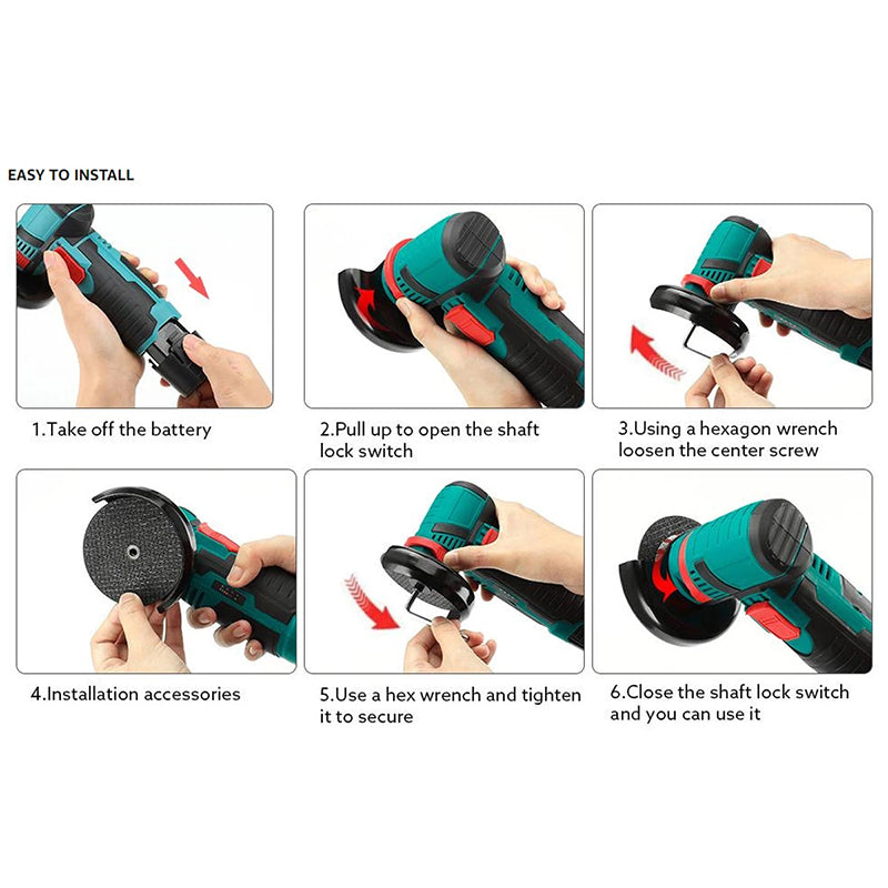 Cordless & Compact: Our Cordless Angle Grinder is battery-powered, you are worry-free about the power supply, which is suitable for outdoor work.