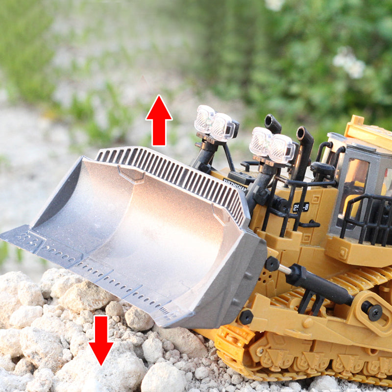 Full Function: Toy bulldozer can be forwards, backwards, trun left and trun right, and can push the alloy bucket up and down through the arms.