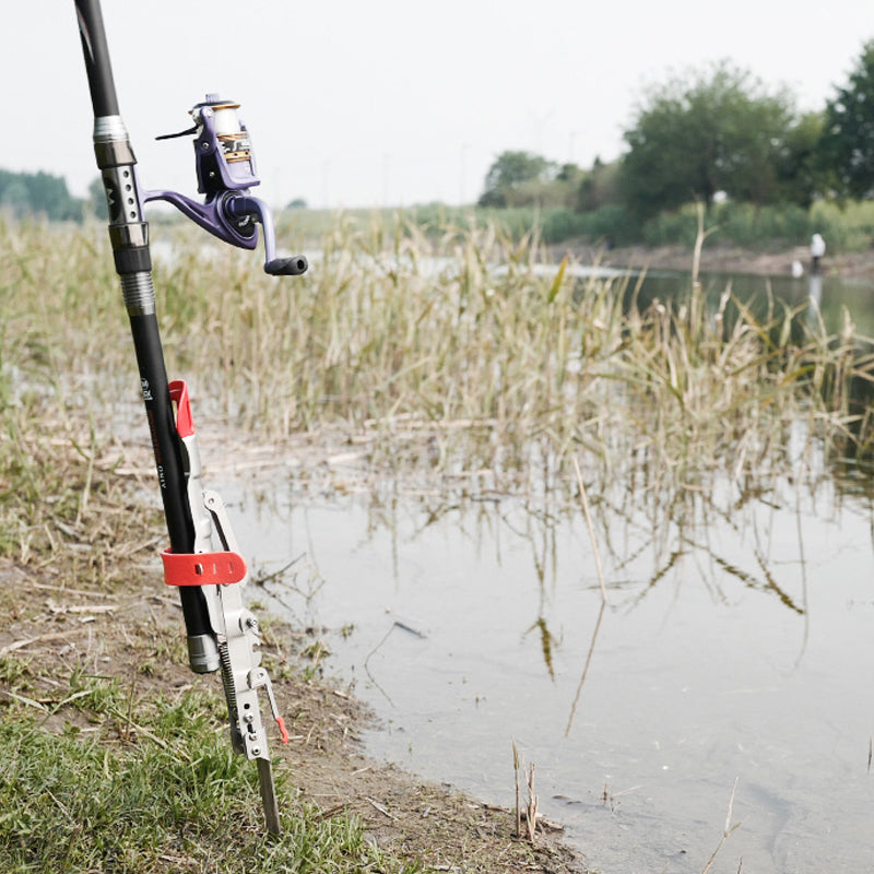 Built-in ground stakes. The new design circle plate for the fishing rack holder easier to plug into the soil than any other old version. You can put your hand directly on the plate and push it to the soil.