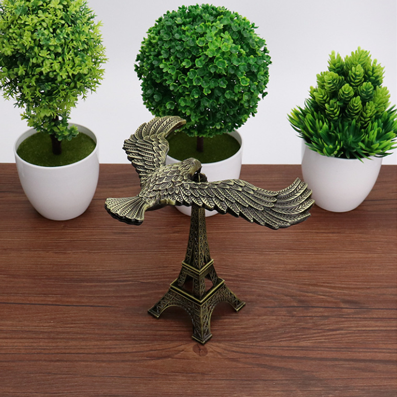 This eagle balances perfectly on the tip of its eiffel tower.