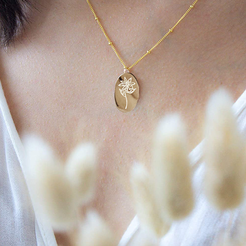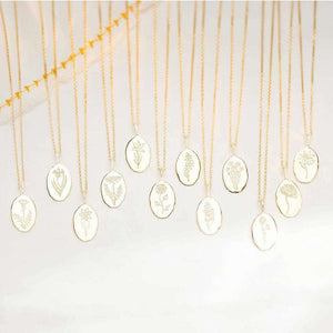 The Birthflower Necklace features 12 different meaningful flowers. Each flower on the pendant of this necklace symbolizes a different month, wear your personal story and choose the flower that is most important to you.