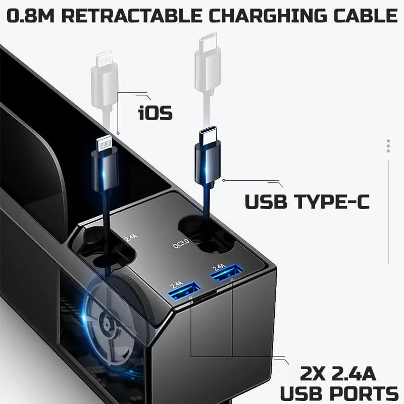 Convenient Charging Station: Tangled cables all over the place causes unnecessary clutter and disturbance while driving.