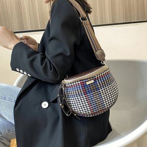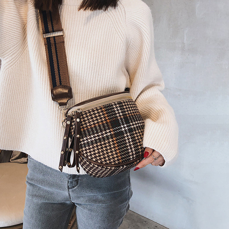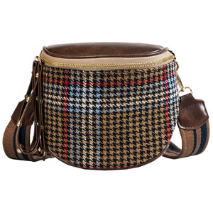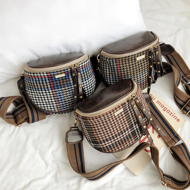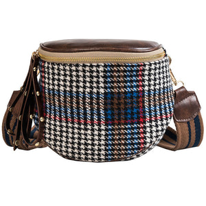 EASY TO MAINTAIN: The designer inspired plaid pattern exterior is made from high quality 100% eco friendly vegan PU leather, while the interior consists of a striped fabric lining and gold tone hardware with center tassles for the front style look. PU leather is durable and easy to clean, simply just wipe with water to keep this bag looking new.