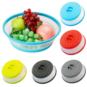 - More than just a microwave plate cover, it can also be used as a washing basket and strainer for fruits and vegetables, a pot lid, and as temporary storage for kitchen utensils.