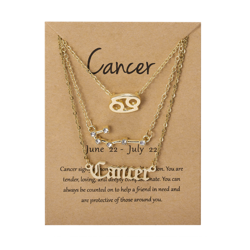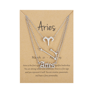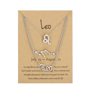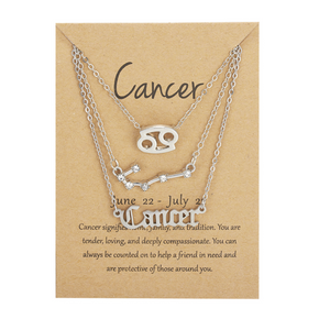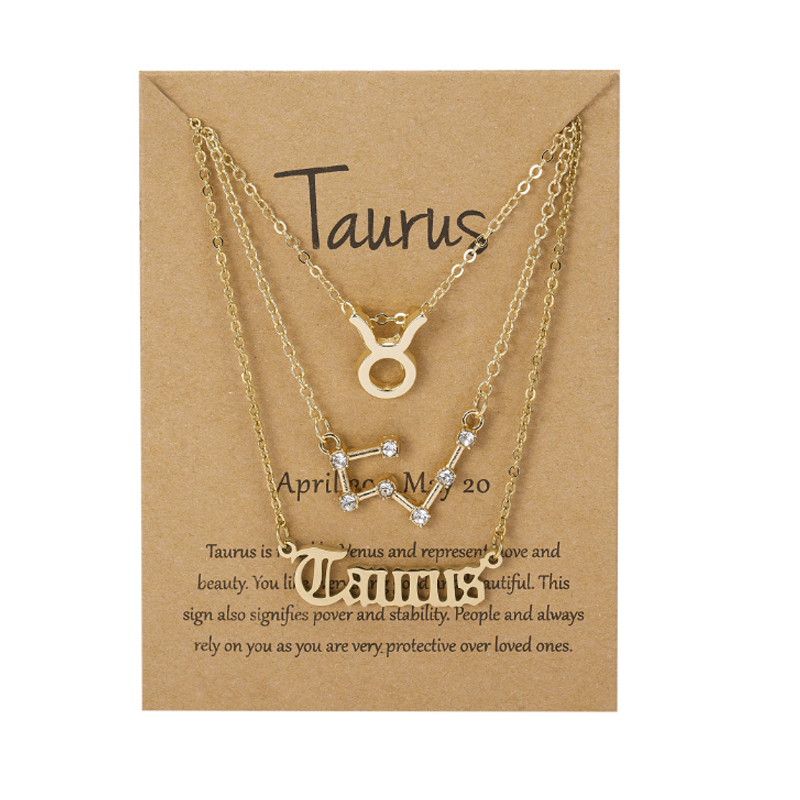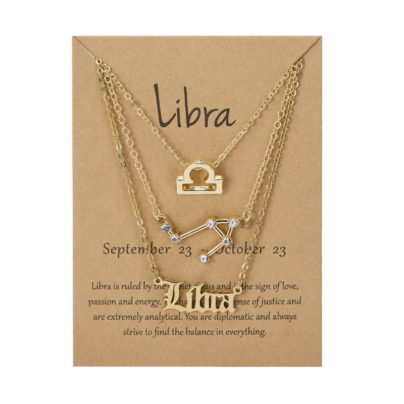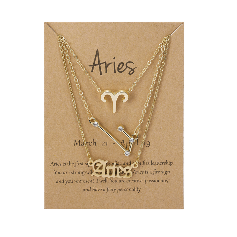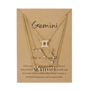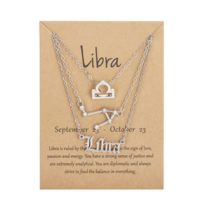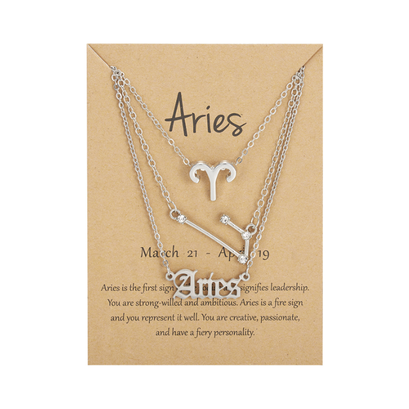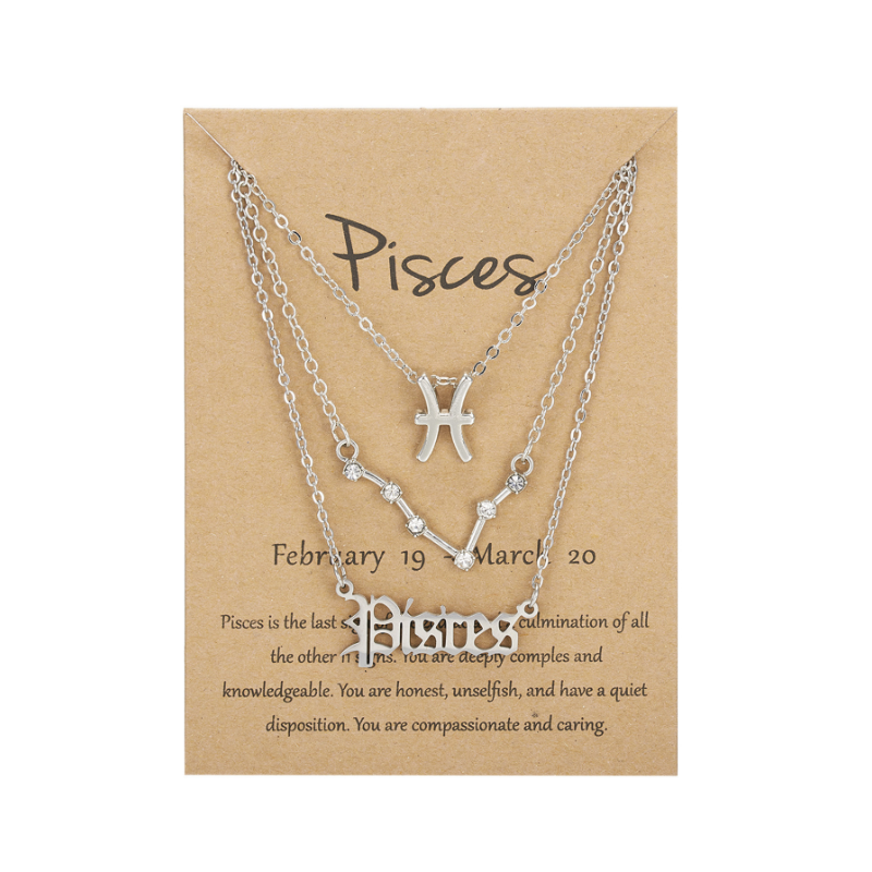 Packing list: 3 constellation necklaces in different styles. (3 colors-gold / silver / rose gold.). 1 * gift box. 1 kraft paper card (description of the special characteristics of the corresponding constellation). 1 * gift bag.