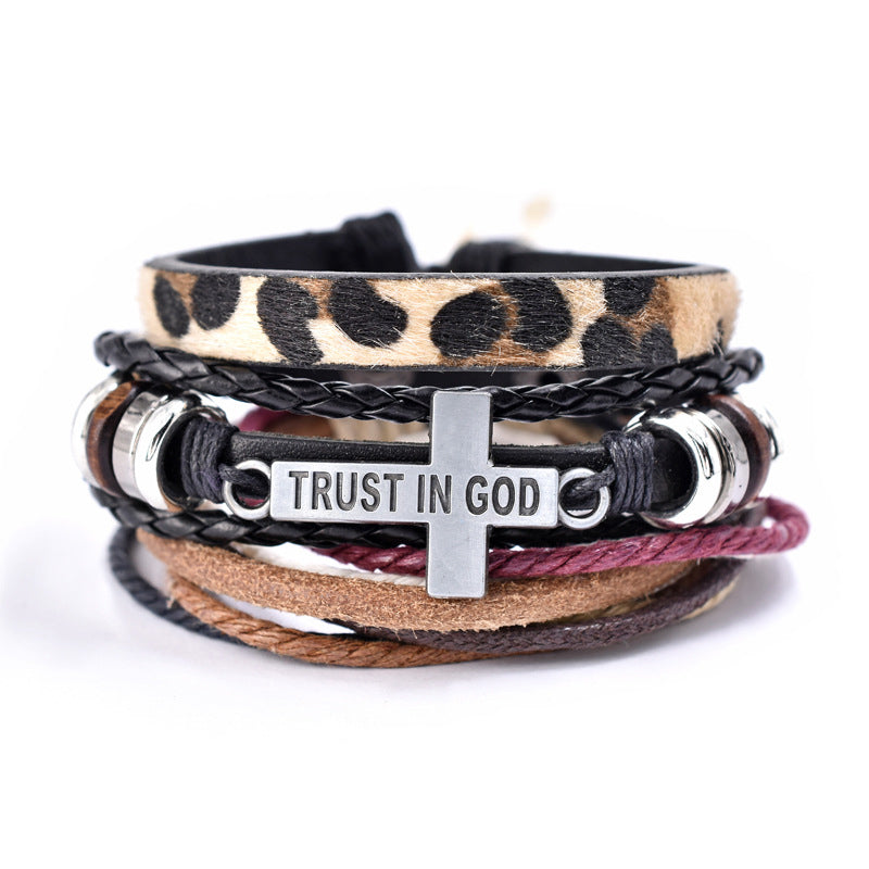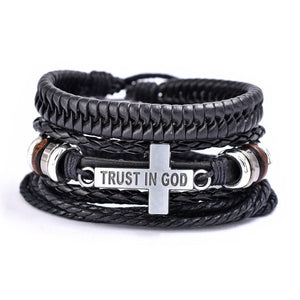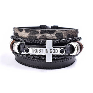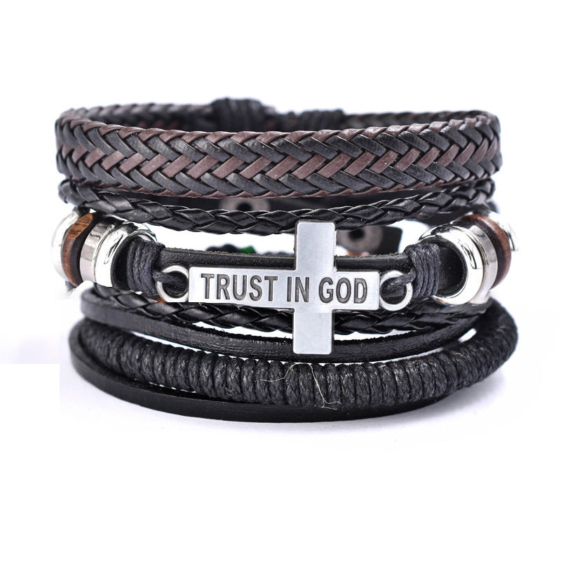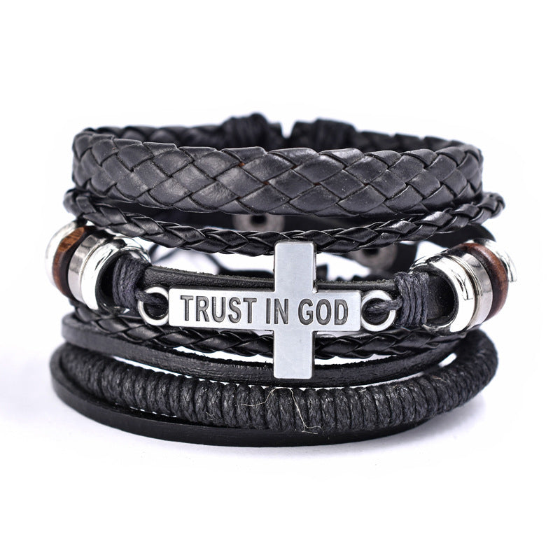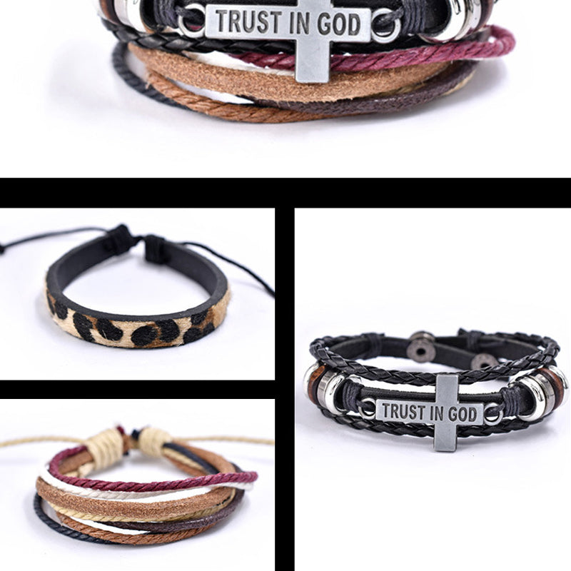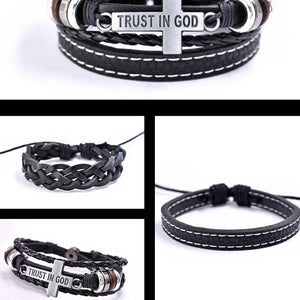 FEATURES: Free Customised cross leather bracelet for man boys. It made of stainless steel and braided leather, comfit to wear, fits for any occasion like sports, fitness, outdoor vacation.