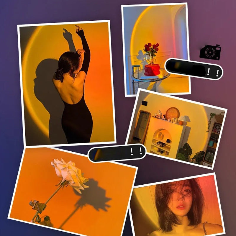 USB Plug & 360°Adjustable: Sunset projection lamp uses a 360°adjustable universal buckle, so that the angle can be adjusted freely, so that it can emit sunset light from different angles to meet the needs of different angles of light. USB connector charging is very convenient, environmentally friendly and energy-saving. Sunset lamp let you enjoy the charm of sunset light anywhere.