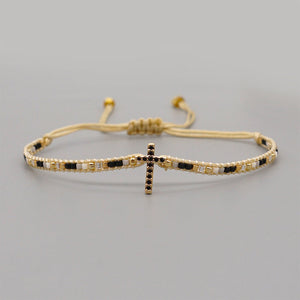 Religious Bracelets: Unique multilayer braided leather bracelet, decor with retro wooden beads and gold alloy cross, perfect for religious day, party, holiday or daily wear.