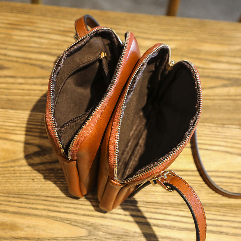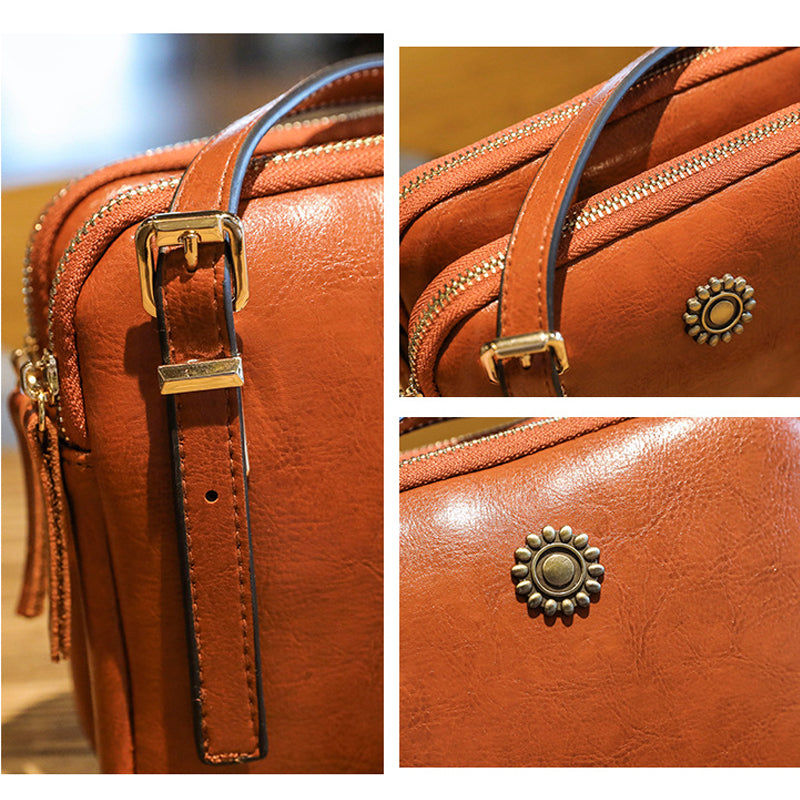 1 * Double Zipper Oil Wax Leather Bag