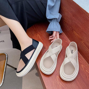 Fashionable elastic cross straps designed to stay stable and look good fit the foot without strangling the foot.