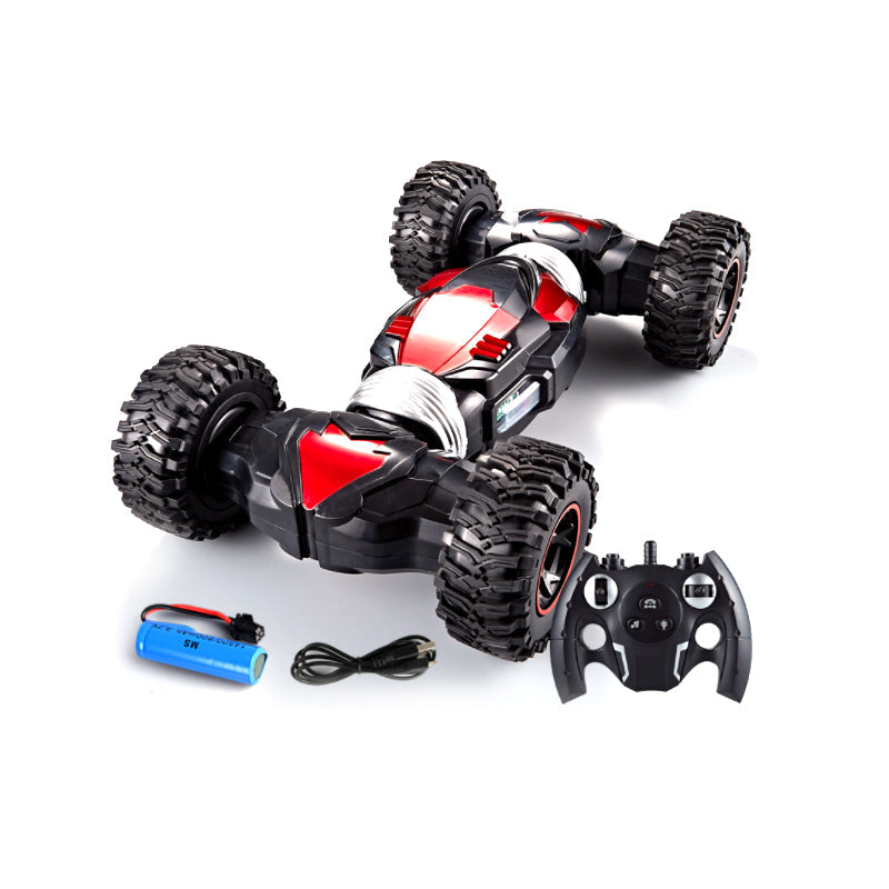 UNBELIEVABLE: The car transforms when you press the button on the remote control, switch to lift mode to face obstacles. Do not panic if it spills over, it always falls back on its wheels and continues on its way. The car stands up on its own and leaves immediately.