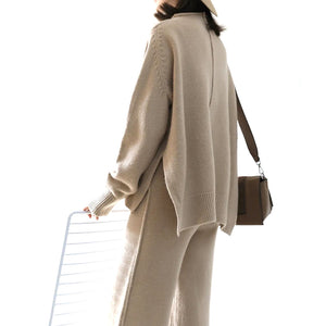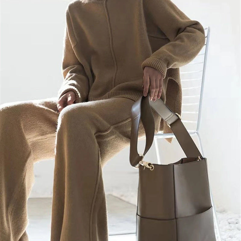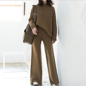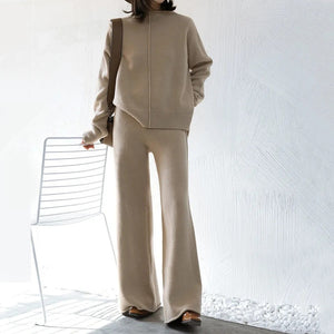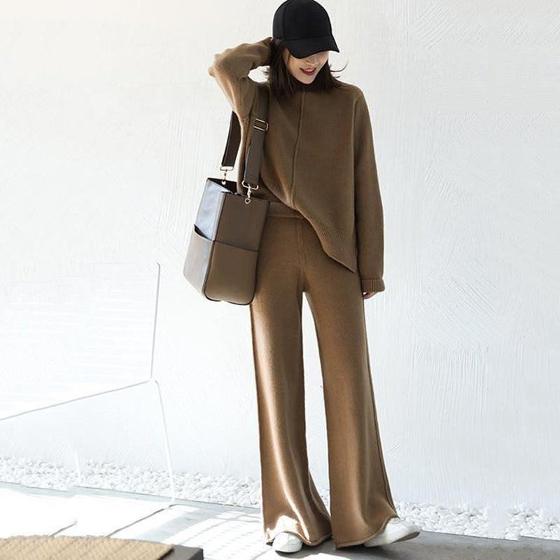 Features: Mid turtle neck top and long straight wide leg pants sets with pockets, 2 piece active outfit set, pullover hoodie, a modern line in the front, ribbed sleeve cuffs, relaxed fit sweatsuit lounge sets.
