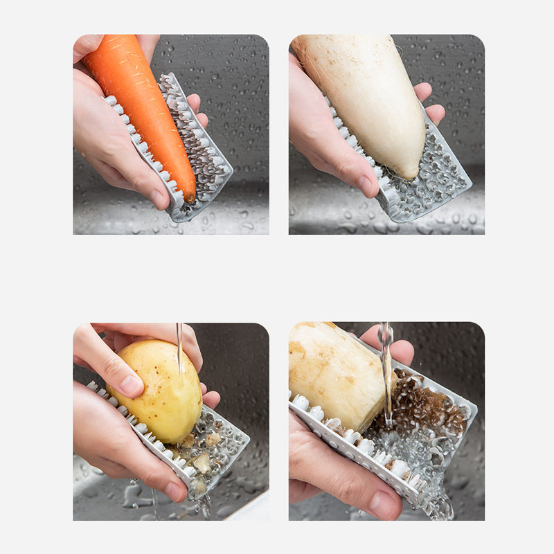 Multifunctional: With this cleaning brush you can wash away the dirt from the vegetable peel, but also the dirt from the kitchen utensils. At the same time, the raised structure on the surface of the cleaning brush allows you to drain the water from the cup or soap.