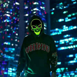 Special Design LED Mask for Halloween: Halloween mask with LED EL lightening wire make you stand out in any party, clubs or other festival events.The mask was made into a skeleton shape. The wire on the face can make light at night. Create a more horrible atmosphere.