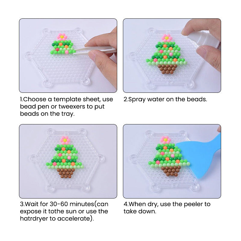 【Safe & Non-Toxic】The water fuse beads for kids are made of 100% environmentally PVA non-toxic material. It can be ensured 100% safe and healthy. (The water fuse beads kit is suitable for ages 7 years up. Please use it under the supervision of adults.)