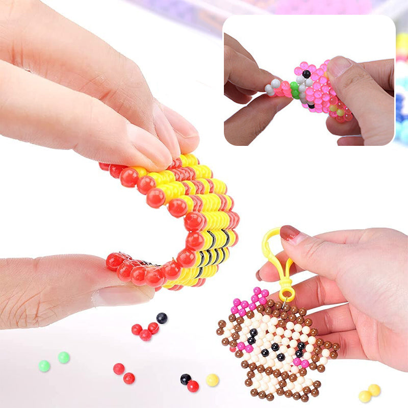 【Value Package】The water fuse beads kit contains 2400 pcs classic and crystal water sticky beads with a variety of accessories including pegboards, shovel, sprayer, chains, key rings, tweezer, bead pen, manual book with rich patterns. Get enough to make many things for kids beginners.