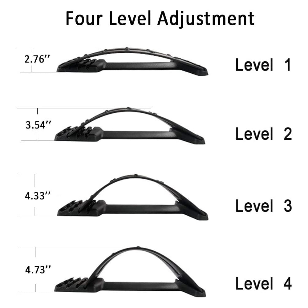 The back support is a vertebral extender used to loosen tense muscles and relieve back pain caused by excessive flexion, overwork pain, poor spine alignment and posture.