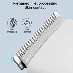 The parts that contact the skin with the cutter head and the positioning comb are rounded to ensure safety and comfort during the hair cutting.