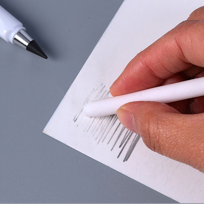 Everlasting Pencil: Our metal inkless pencil friction on the paper to decompose the alloy metal molecules and leave it on the surface of the paper. So you can write without ink. The pen nib color is similiar to the wood pencils