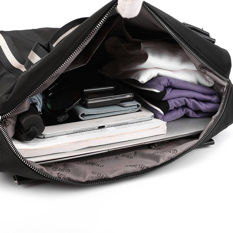 Large Capacity: umbrella, earphones, laptop, books, iPad, mobile phone, water bottle, several thin clothes, etc.