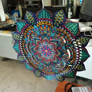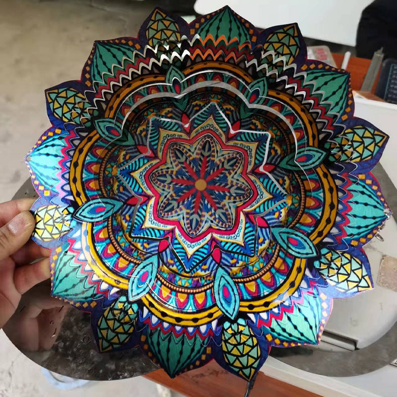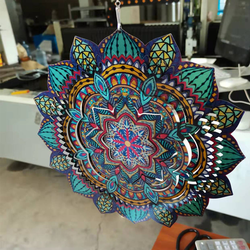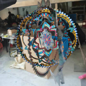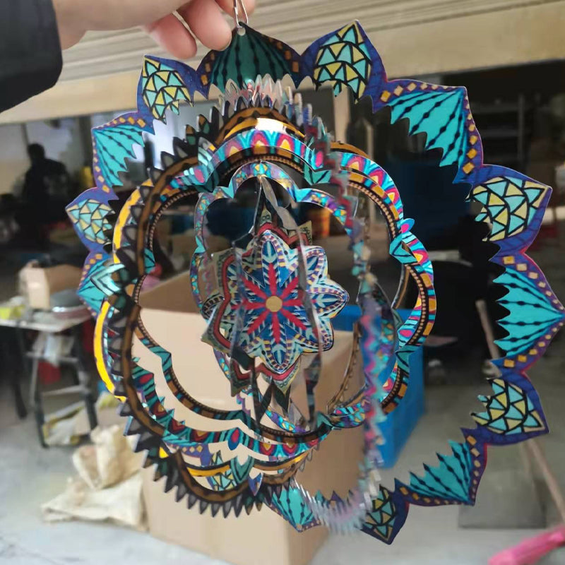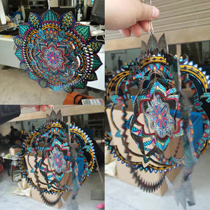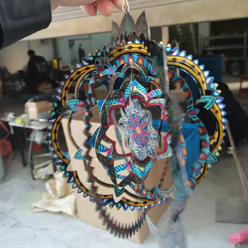 MULTIPLE HANGING METHODS: Our home garden decorations 3D kinetic wind spinners with mandala can hang on windows, trees, lamps, balcony, gallery, hall, bedroom, living room, garden and so on due to the 360°rotary hook, it may be used with a battery operated motor so you can enjoy it when there is little wind to twirl the metal large sun catchers spinners.
