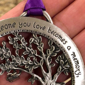 Our beloved sympathy quote, "When someone you love becomes a memory....the memory becomes a treasure" surrounds the outer edge of this remembrance ornament. This warm sympathy message will be a keepsake for life. Our lost loved ones will always be in our thoughts, inspiring, encouraging, and empowering us.