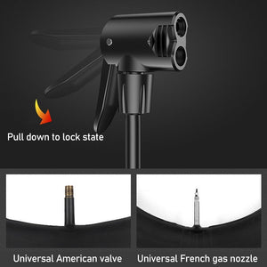 2 Vales: No adapters or adjustments needed, our pump is suitable for American and France air valve, fits Presta and Schrader Valve bikes.