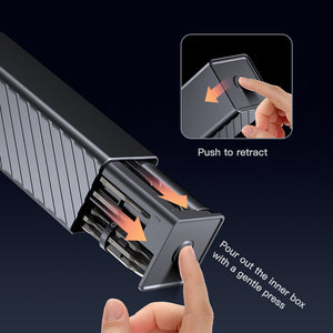 Everything in a magnetic case: Comes with a magnetic case that keeps the electric screwdriver and 50 metal bits orderly in a place. The pop-up mechanism brings you satisfying sensation for every open and close of the case. The chuck and bits are both magnetic for easy attachment.