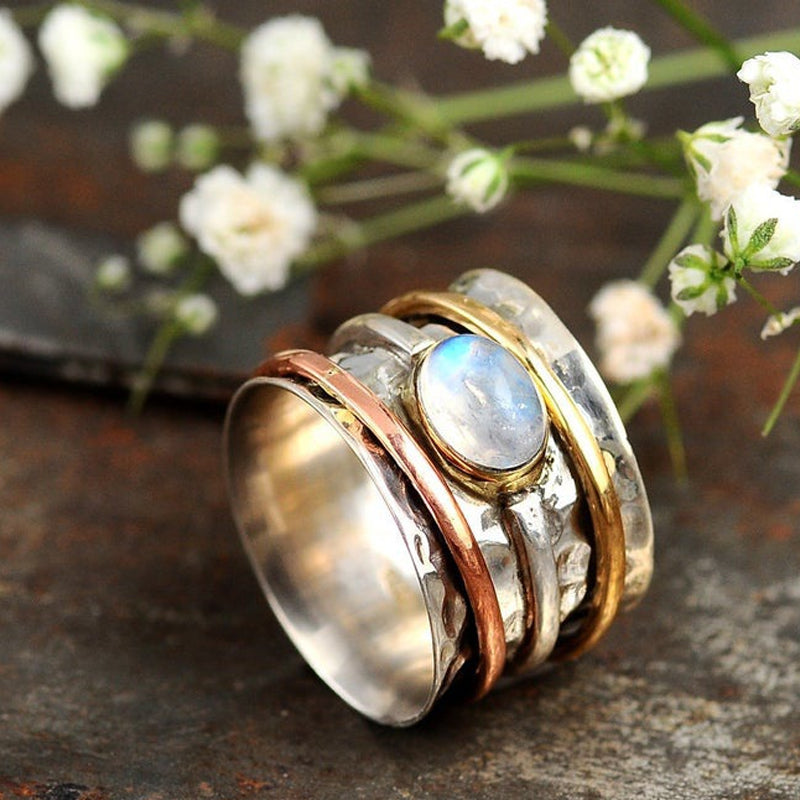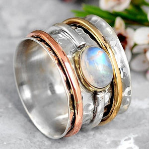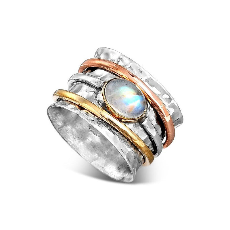 SPIN FREELY, SMOOTH AND COMFORTABLE - Comfort fit with no sharp edges, Made of 925 sterling silver (Stamped) hammered, and two spinning bands made of copper and brass. Not just another flimsy piece of jewelry to lay on your drawer, our jewelry designed to last long.