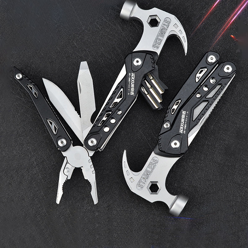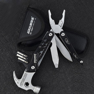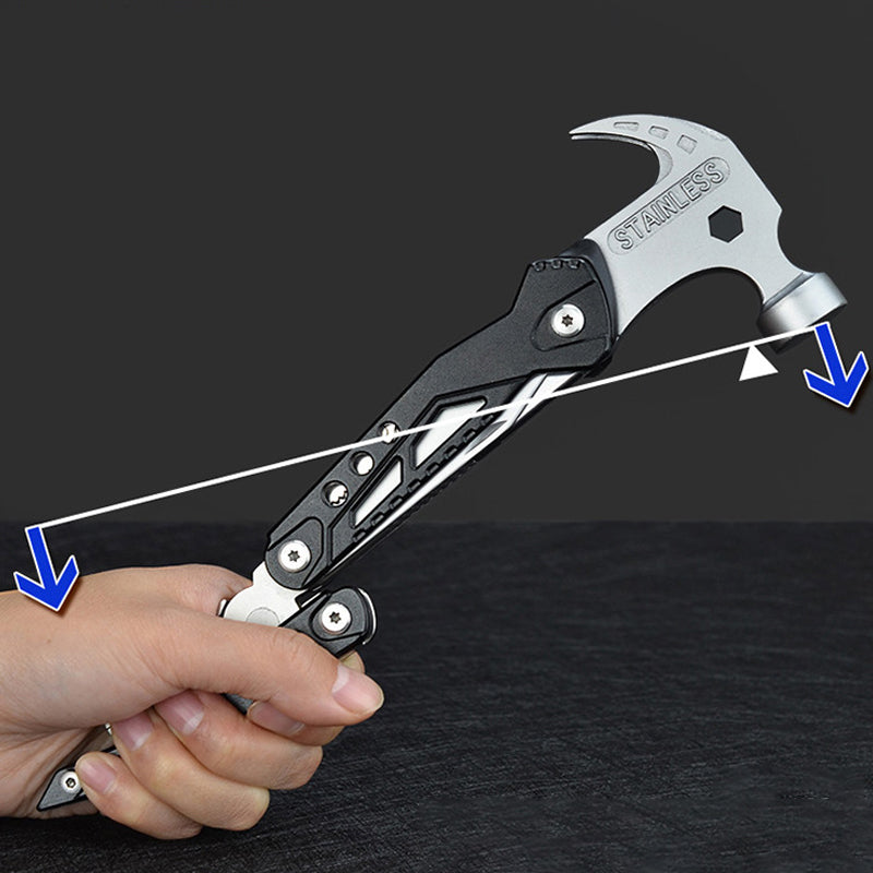 🔧 ALL IN ONE MULTIFUNCTIONAL SET: This 14-in-1 camping gear includes a hammer, nail claw, flat and pipe gripper, wire cutter, flat-head and Phillips screwdriver, saw, straight and serrated blade, file, bottle opener and heavy-duty nylon carrying case with belt holster. It works well for camping, exploring, fishing, field training, and long-distance travel.