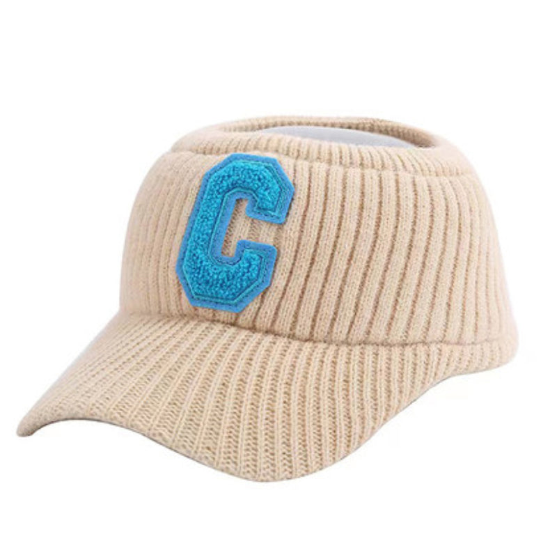 New cute knitted hat with C letters: This hat is very suitable for women with ponytails and can be easily combined. Very beautiful and fashionable, it is a unique accessory.