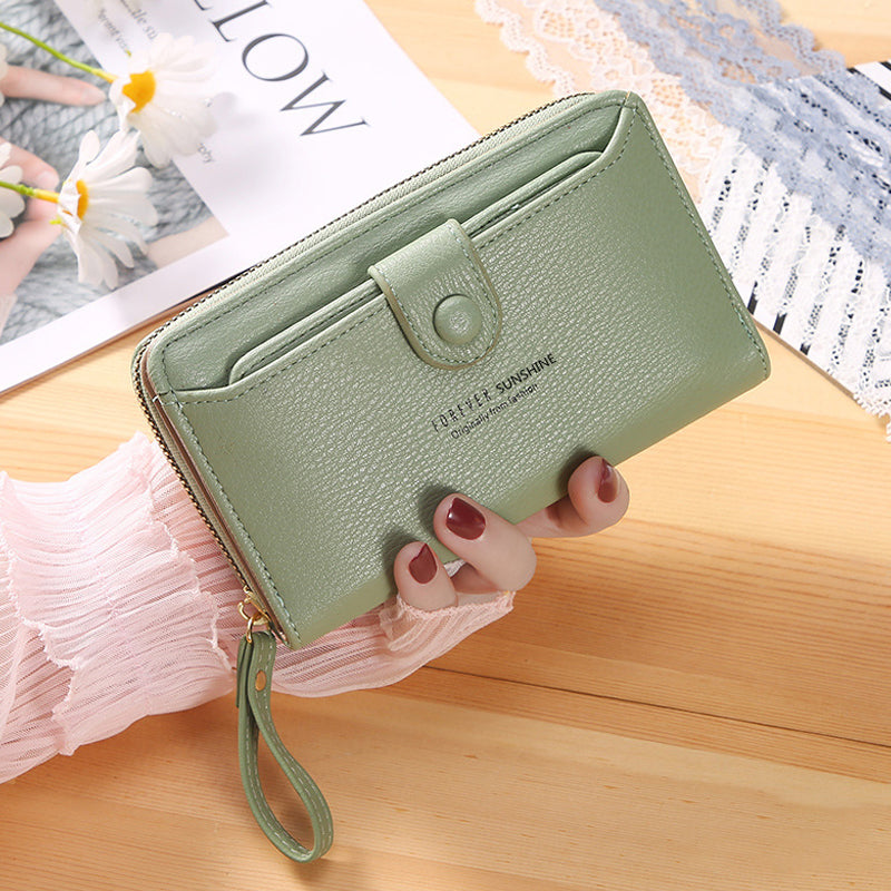 【Practical Zippered Design】This functional ladies wallet has a zippered design that ensures nothing falls out and makes it easy to access your cards or money. With 1 detachable bracelet, it's a lightweight, perfectly sized wallet that you can hold in your hand or slip into your purse or purse.