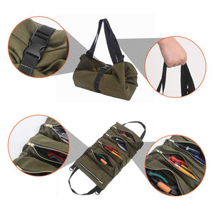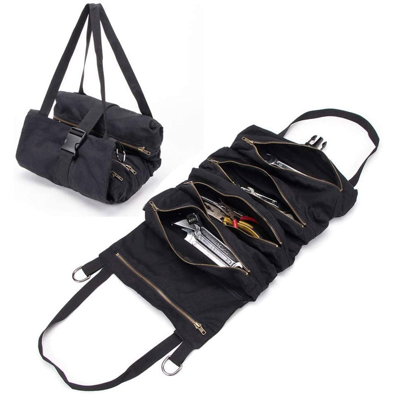 Easy Access On Everywhere: It has side-release buckles that you can use to unroll the Roll Up Tool Bag easily and you can use the grommets or top handle to hang for easy access in the car, workshop, garage, or job site. Grab the tools you need without having to dig through a cluttered toolbox.