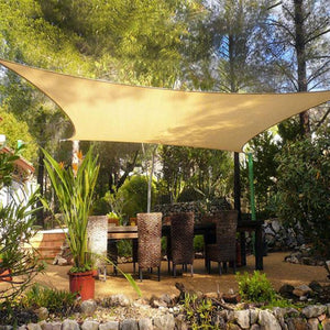 Sunshade sails have curved sides to enhance pull strength and prevent drooping. (Middle-center of the sun shade will be shorter in width due to curves)