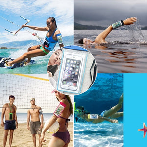 Super Waterproof: Fully submersible and waterproof, IPX8 certificated to 100 feet (30 meters).The water resistant phone cases provides protection for ID,credit cards,cash,phones,and keys from water damage when swimming, rafting,boating,snowing and skiing.