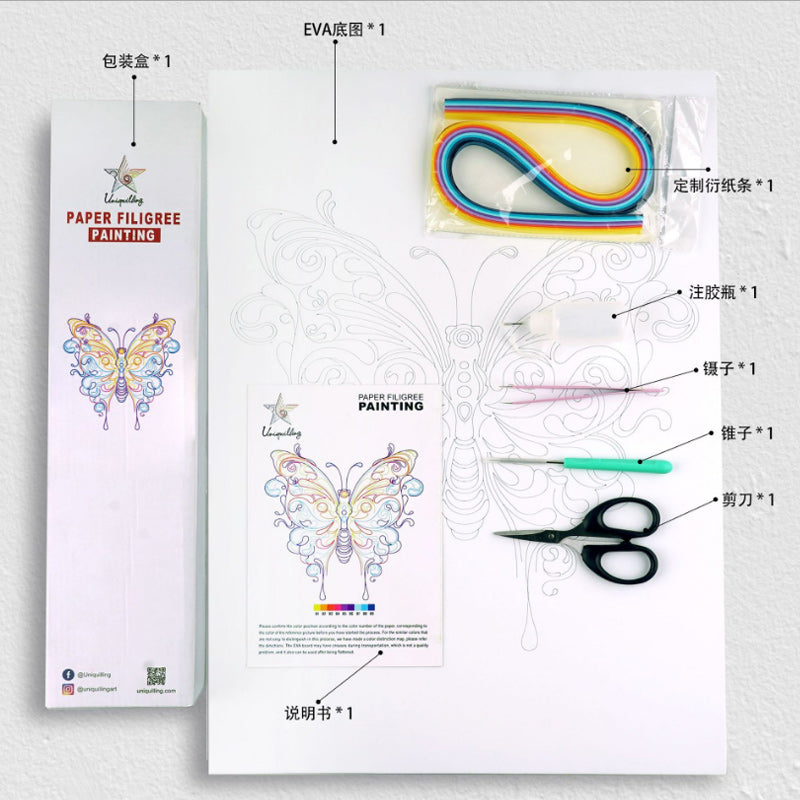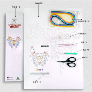 Complete Tool Kit: The package contains EVA pattern board, Paper strips, White glue, Glue applicator, Tweezers, Awls, Scissors, and Instructions. Let's be creative with the easy and professional paper filigree painting Kit.
