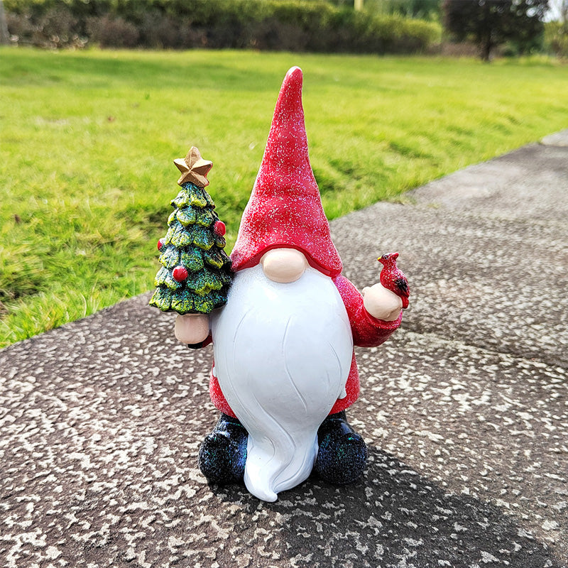 CHRISTMAS THEME DESIGN: Combining gnome, Christmas tree, and cardinal, three classic Christmas elements together. Hand-painted and finished with a UV resistant coating, with durable, high-grade resin, it can be fit to all types of weather conditions.