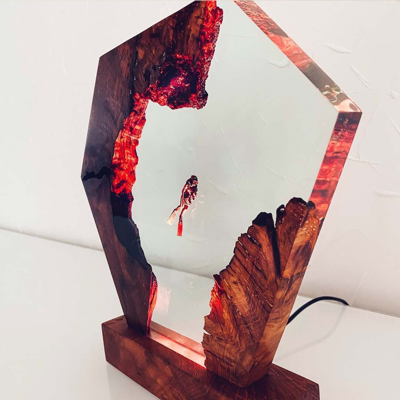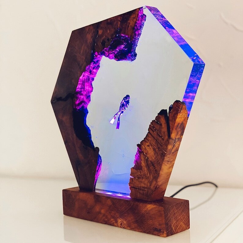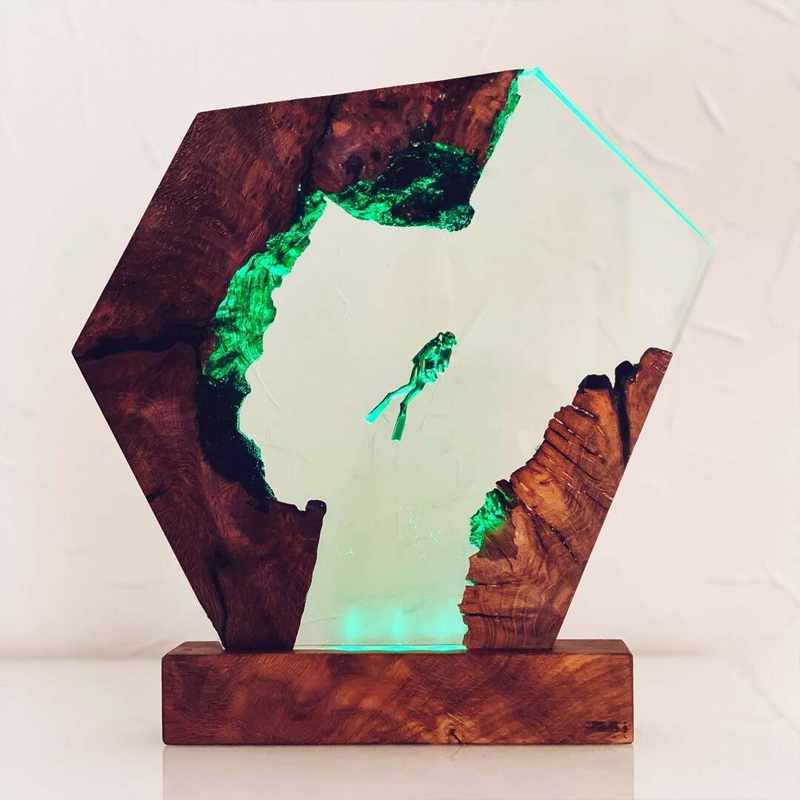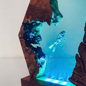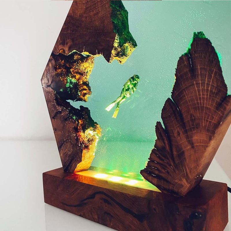 A lamp, see the whole underwater world! Deep water caves with mysterious light and a lonely diver explore them:)