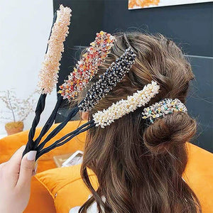 Rhinestone bun maker is a bendable hair tool that holds hair up stylishly all day long. Just clamp your hair with the clip, roll up and bend it into a perfect bun or a romantic up-do in seconds!