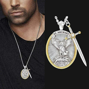 Design: Saint Michael Necklace Medal-St Michael Coin Pendant. Saint Michael Protect Us: Spiritual gift of being blessed for lover family friend and yourself as a daily necklace. Protect Religious Jewelry gift for Men or Women.