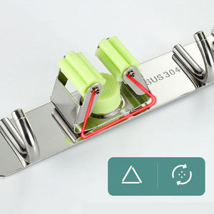 The broom holder wall mount is constructed of Type premium grade 304 stainless steel. High-quality brushed stainless steel, build to resist daily scratches, corrosion, and tarnishing.