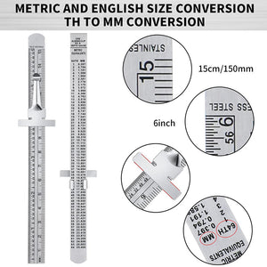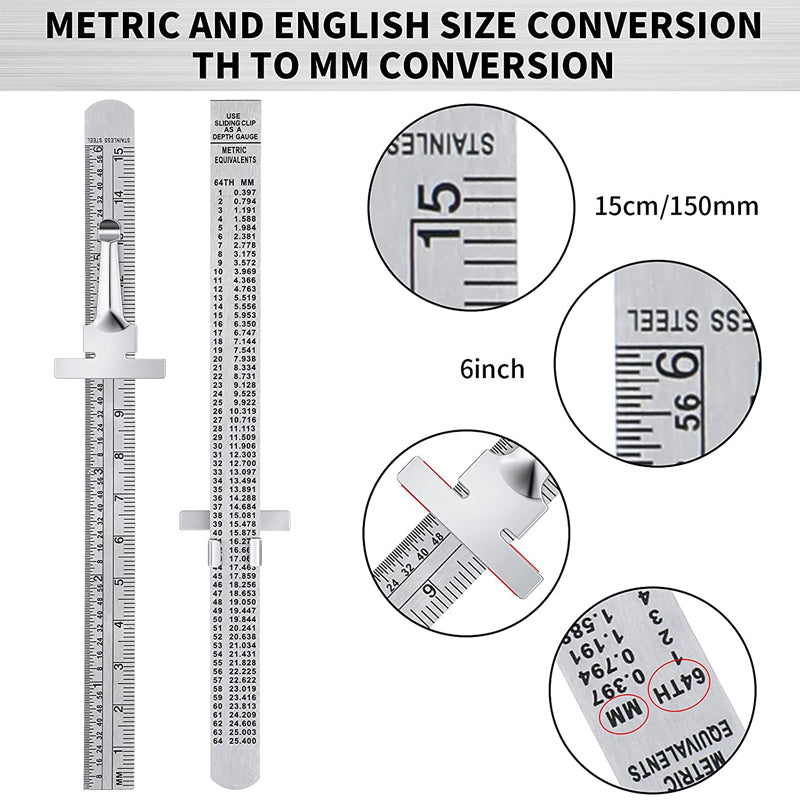 Steel ruler: the back of sliding steel ruler is engraved with a conversion table from inches to mm, which facilitates the conversion of various measurement data, offering you considerable convenience