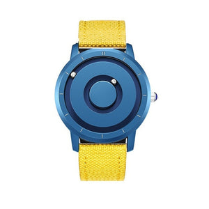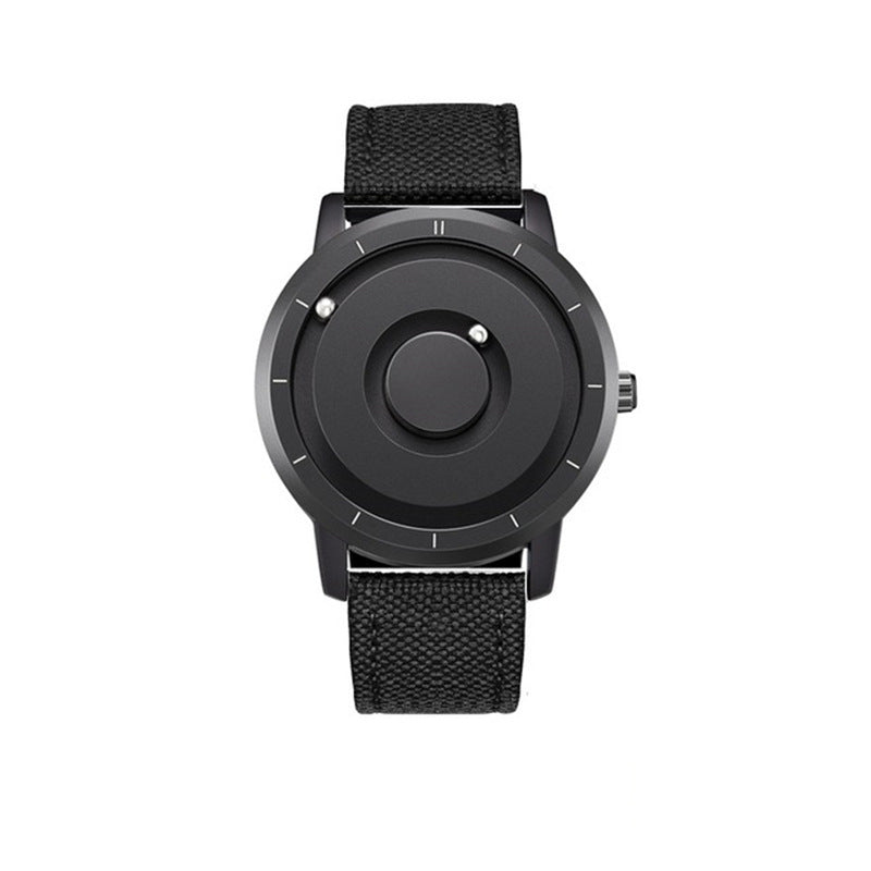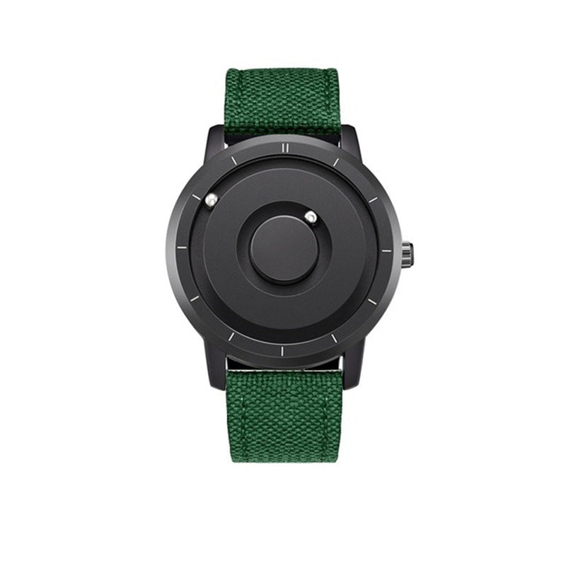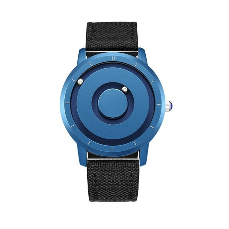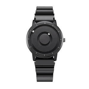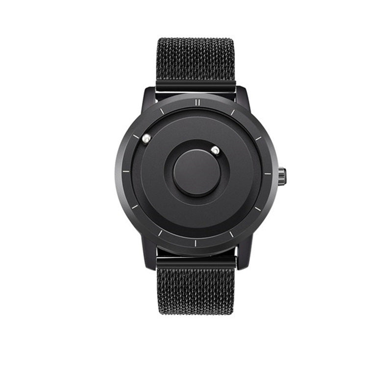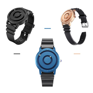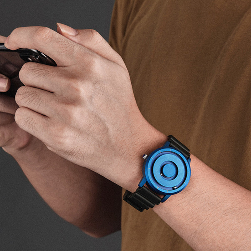 The steel ball inlaid on the dial will slip away when thrown or fiddled with hard force, which will not affect the accuracy of time. Don't worry, as long as you shake the watch from left to right, the steel ball will attract itself back to the correct time point by magnetic force.