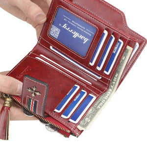 💗【Advanced Grained Leather】This wallet is made of advanced leather with waxing and oiling finish, traditional and refined craft through multi-process carefully, fashion style and exquisite credit card slots and mass storage versatile design. It is worthy owning!