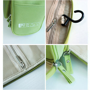 - Hook design,the travel cosmetics is convenient for washing and hanging, convenient to use and avoid water.