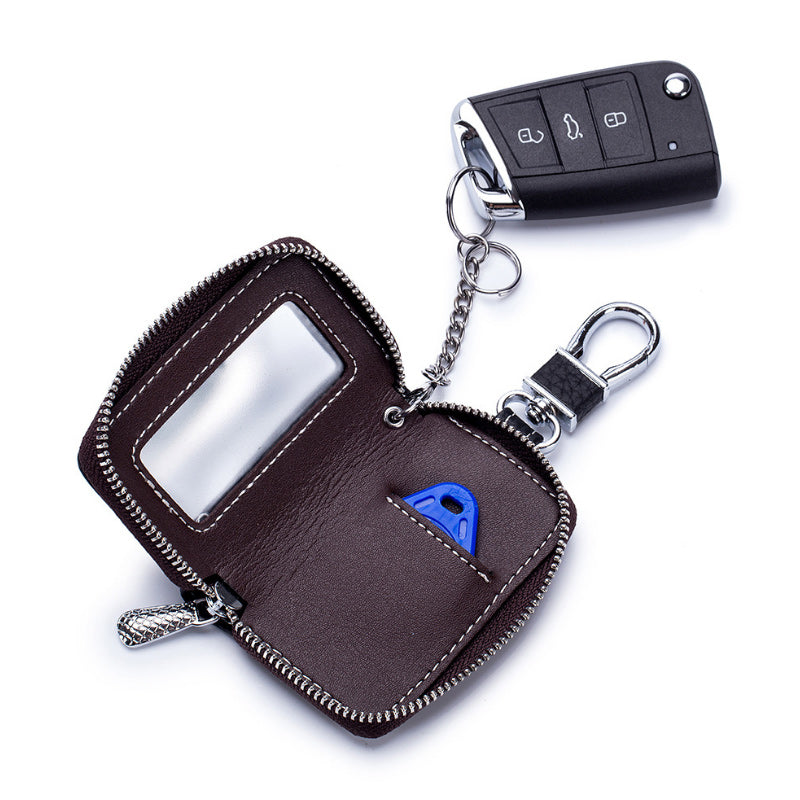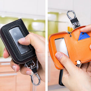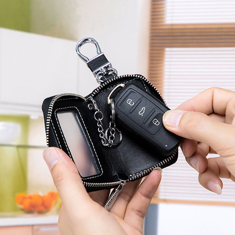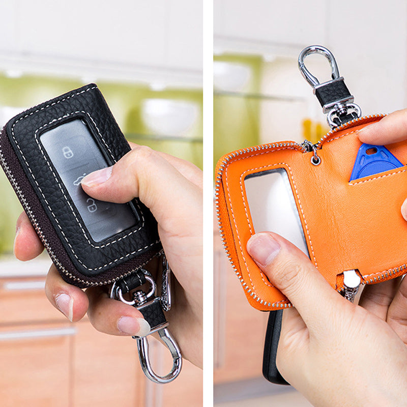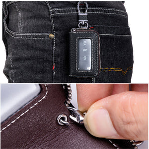 CONVENIENT ORGANIZER:The zipper on the two side of the car key case can help you easily to open/close the case, and it will protect key damage and makes your belongings secure inside and easy to access. Car key case wallet also fits for some coin or currency.