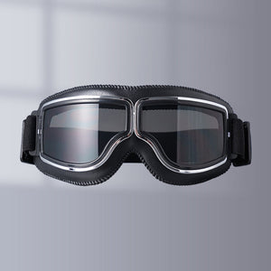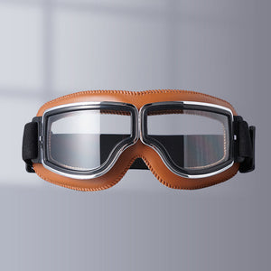UNIQUE DESIGN --- √ Retro pilot style motorcycle goggles are made of ABS material. Soft sponge frame with adjustable elastic headband for your comfort.