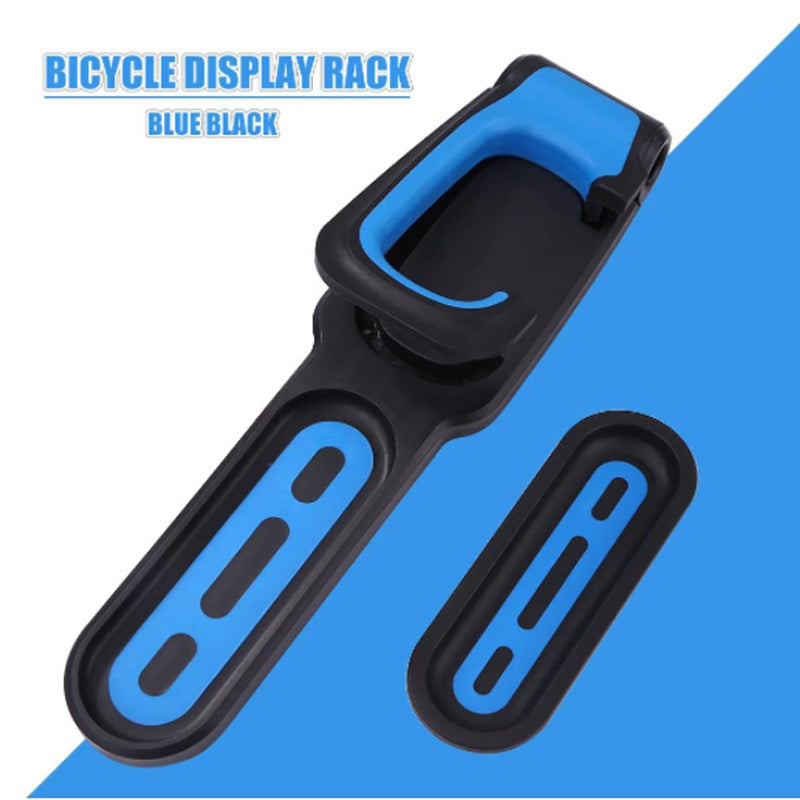 Vertical wall-mounted bicycle storage holder for home, office and retail applications.
