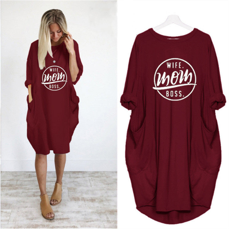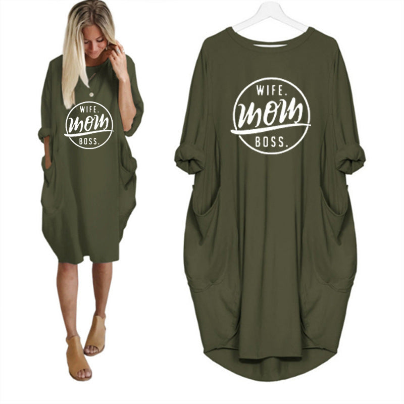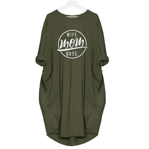 "Wife-Mom-Boss" Printed Dress